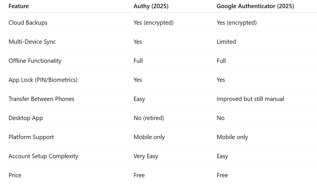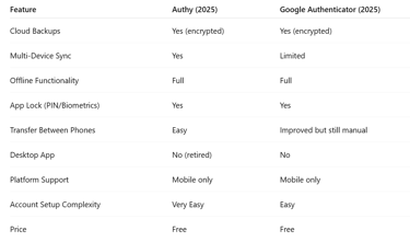 1. Authy vs Google Authenticator: Quick Comparison Table