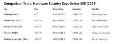 For everyday users, students, freelancers, and small business owners, these under-$50 hardware security keys offer real, meaningful protection at a wallet-friendly cost.