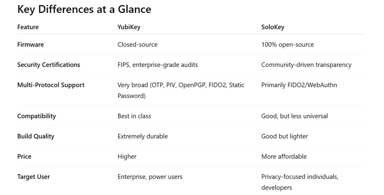 If transparency matters more than mainstream adoption, SoloKey is appealing.